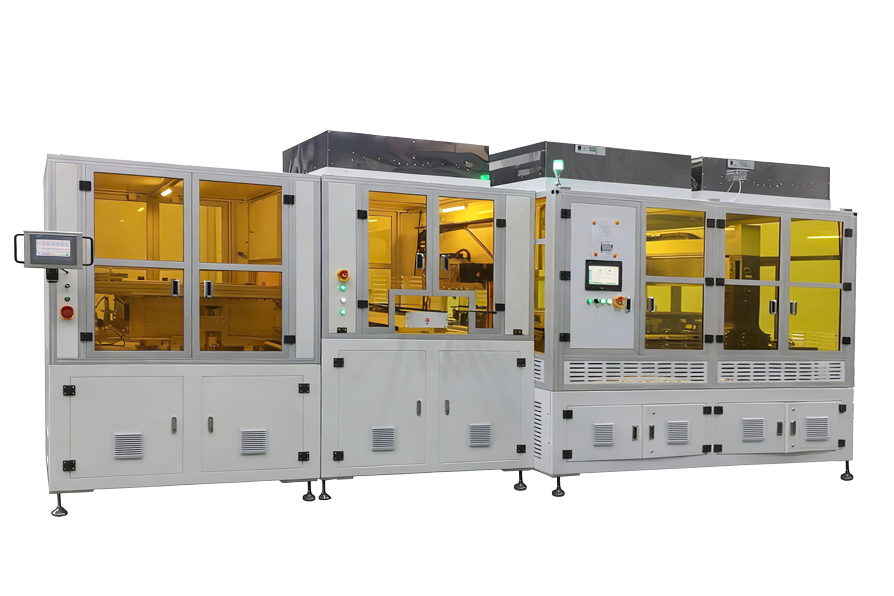 The Nite NEJ-PTBM provides an advanced inkjet printing solution for the new display module segment manufacturing process filed, specializing in high-precision and high-efficiency spraying of BM (Black Matrix) light-shielding layer. The production line is centered around inkjet print equipment, with auxiliary processes including Plasma cleaning, automated loading/unloading, curing and others. Depending on production capacity requirements, it can achieve 4.5S/9S cycle times.